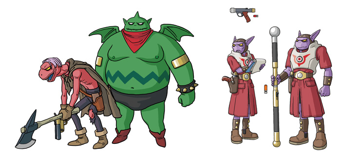 Illustrations of new characters drawn by Akira Toriyama.