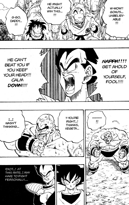 —Dado que solo trabajan juntos para lograr una meta, ¿dirías que las cosas son solo negocios entre ellos? Parecen tener un estilo de comunicación franco, lo que podemos ver en cómo Nappa le habla a Vegeta de una manera bastante informal.