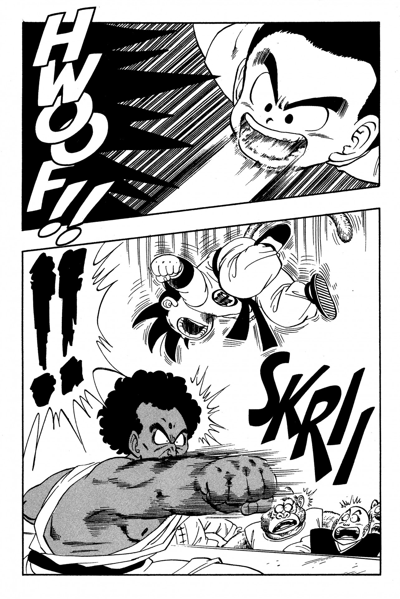 Fumita:Hablando de eso, en esa pelea con el King Chappa, Goku desarrolló una técnica completamente nueva. Exhala con una fuerza increíble y esa fuerza le permitió esquivar el ataque del Rey Chappa. Recuerdo haber pensado que realmente sería posible hacer eso si tuvieras suficiente capacidad pulmonar.
