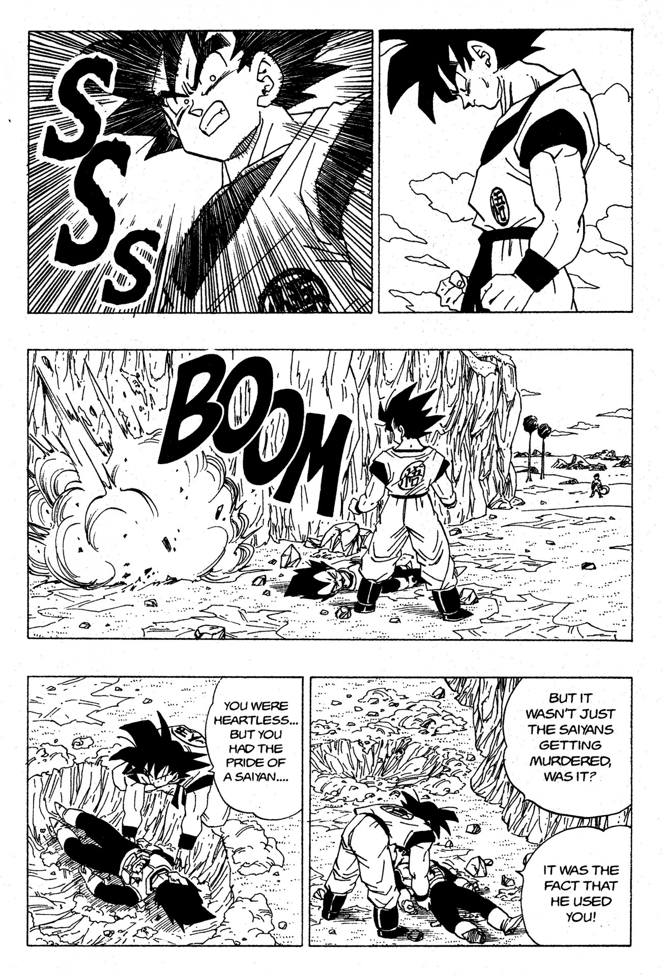 Fumita:También está ese otro que Goku solo hizo una vez. Cuando estaba enterrando a Vegeta, miró al suelo y luego, ¡puf! Hay un gran agujero allí.