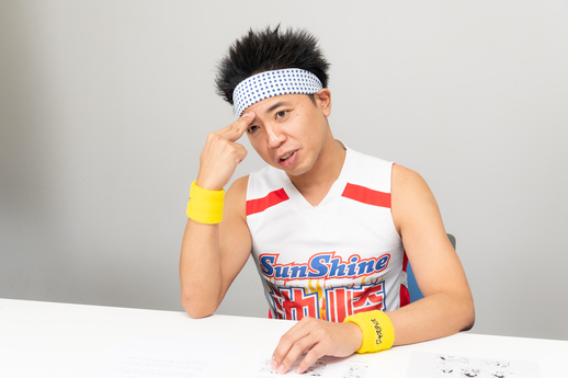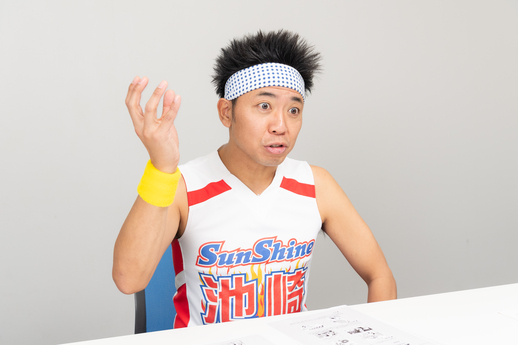 Sunshine Ikezaki (en adelante Ikezaki):No sé si cuenta como entrenamiento, pero siempre me ha encantado hacer reír a la gente. Como parte de eso, fui una especie de payaso de la clase desde los primeros años de la escuela primaria. Se corrió la voz de que yo era un tipo divertido, y de repente un día un niño al azar me desafió cuando se acercó a mí y me dijo: "Entonces tú eres ese tipo Ikezaki, ¿eh?".