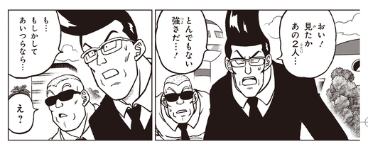 El Dr. Hedo activa un colosal dinosaurio androide, Dinodroid 1, para recibirlos, pero el dúo Saiyaman logra derribarlo mediante un impresionante trabajo en equipo.