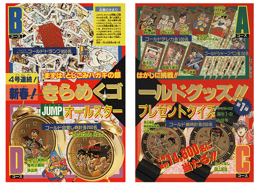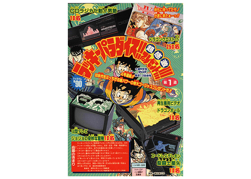 Avanzando un poco, ¡la edición de año nuevo de 1990 estuvo repleta de regalos! Los lectores afortunados pudieron ganar obsequios increíbles, como un reloj despertador dorado con el tema de Dragon Ball o un VCP.