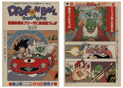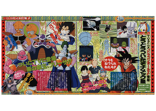 ¡La portada de este número muestra a Goku y los demás con ropa espacial deportiva! El tema intergaláctico continuó en las primeras páginas en color, donde pudimos contemplar el misterioso paisaje de este nuevo mundo alienígena. ¡Los fanáticos no pudieron contener su emoción!