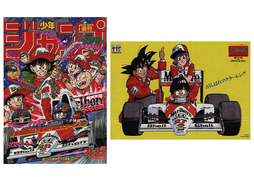 El escenario para la eventual batalla entre Goku y Frieza comenzó a prepararse en las portadas de Shonen Jump, y en medio de esta atmósfera emocionante, ¡un boom de las carreras de F1 también se apoderó del mundo! Weekly Shonen Jump incluso se unió al Gran Premio de Japón de F1 como patrocinador, lo que dio lugar a la colaboración de ensueño que ves aquí. ¡Mira a Goku y compañía ataviados al estilo F1 en la portada y el póster!