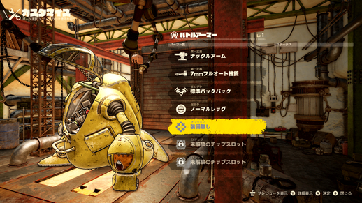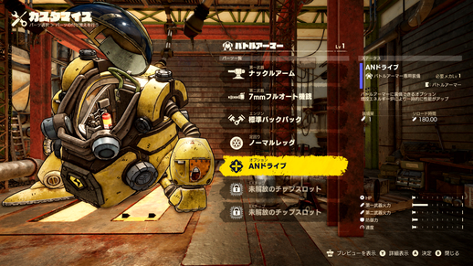 ¡En el Garaje, puedes usar las piezas que has recolectado para personalizar tus vehículos! ¡Equipa un AN Drive opcional a una armadura de batalla en modo normal para darle un cambio de imagen elegante además de cambiar sus habilidades!