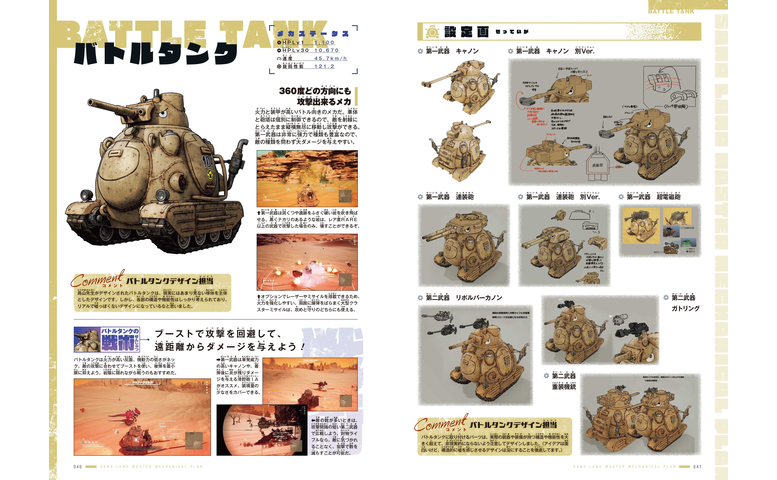 Las páginas de vehículos incluyen muchos consejos útiles que te ayudarán en el juego, como información sobre las piezas utilizadas para la personalización y estrategias sobre cómo utilizar mejor cada vehículo. Además, también presentan arte conceptual y comentarios de los diseñadores principales que solo sirven para realzar el atractivo de los diseños de Toriyama.