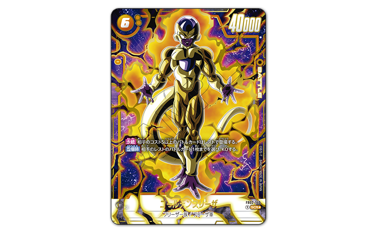 En cuanto a la tarjeta SCR Alt-Art "Golden Frieza", este arte especial muestra a Frieza trascendiendo los límites de su forma habitual, brillando en oro y rebosando confianza.