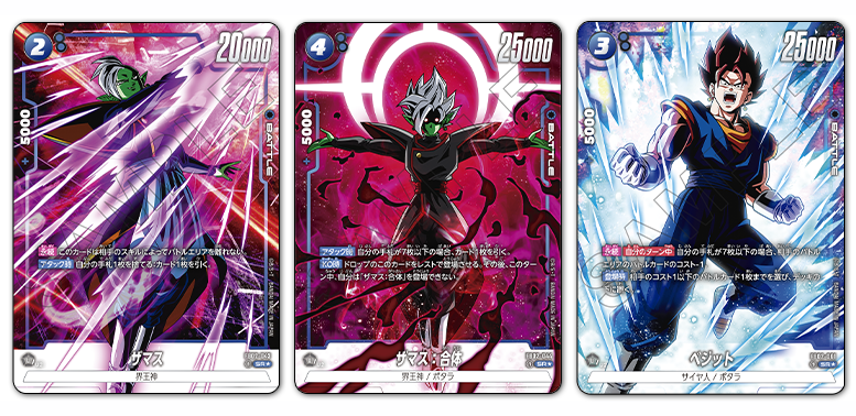 Las tarjetas SR Alt-Art azules son "Zamasu", "Zamasu: Fusionado" y "Vegito".