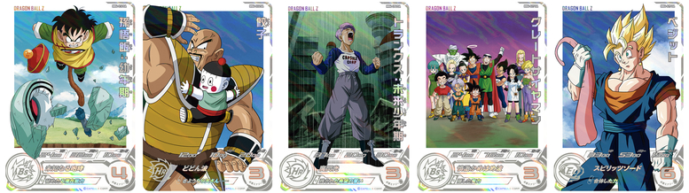 Además, ¡la alineación también incluye cartas que recrean el final del arco de Majin Buu ! Hay una tarjeta de Gohan: Adolescencia con la habilidad estándar "Nunca ganarás...", que representa a Gohan corriendo para salvar a sus amigos del peligro, así como una tarjeta de Super Buu que puede transformarse con el CAA "Change Rush".