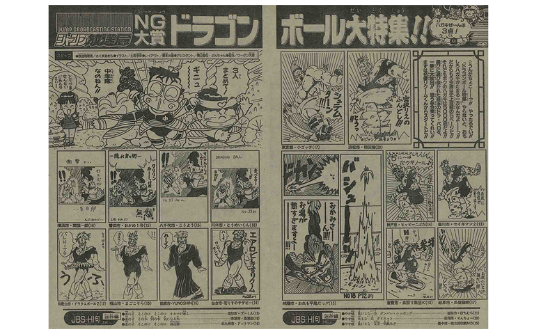 ¡Por esta época, la manía de Dragon Ball también se extendió al rincón de lectores de la revista "Jump Broadcasting Station"! Los lectores compartieron aquí sus chistes originales de Dragon Ball en un artículo de lujo.