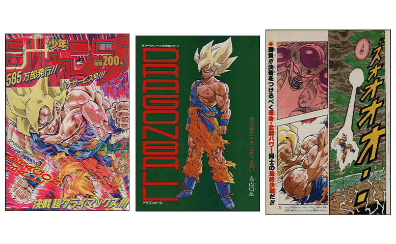 ¡Super Saiyan Goku luego explotó en la portada de esta edición de Weekly Shonen Jump! Aquí se desarrolló la batalla final contra el Super Saiyan y el malvado emperador, ¡comenzando con algunas impresionantes páginas en color!