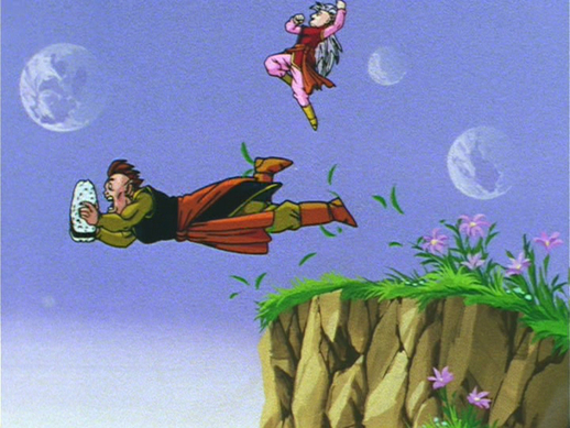 En un momento, el Supreme Kai del Sur le robó una bola de arroz gigantesca al Supreme Kai del Oeste.