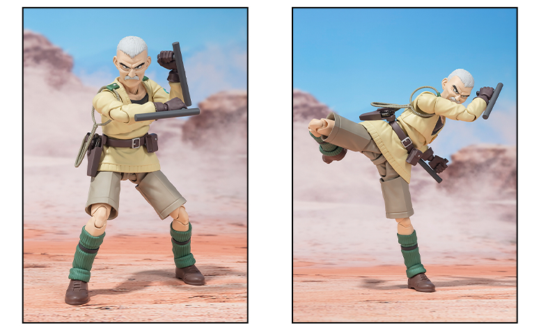 Con el alto nivel de articulación habitual de S.H.Figuarts, el Sheriff Rao puede empuñar tonfas y dar patadas giratorias, ¡tal como lo hace en la pantalla!