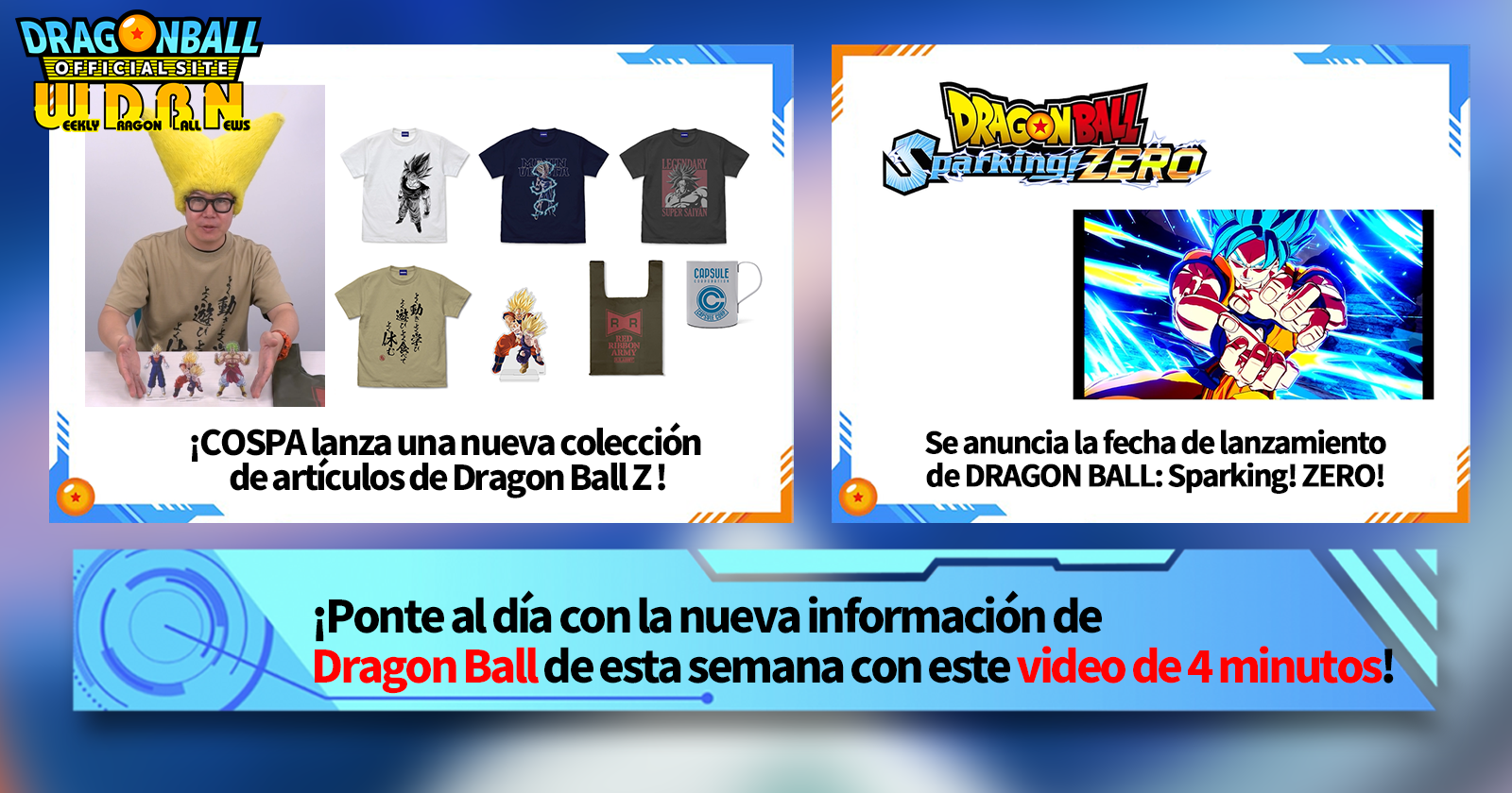 "Noticias semanales de Dragon Ball" es una serie de videos que se actualiza todos los lunes (JST) para brindarte las últimas noticias en el mundo de Dragon Ball. Únase al editor de V Jump, Victory Uchida, mientras cubre toda la información más reciente publicada la semana anterior, así como nuevas actualizaciones como información de nuevos productos y noticias del sitio para la próxima semana.