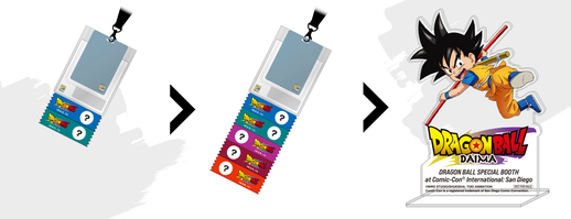 Pasa por el stand especial de Dragon Ball y recoge un cordón para participar en el Booth Rally, ¡luego visita cada zona para conseguir listones! ¡Colecciónalos todos y obtendrás un soporte acrílico Dragon Ball DAIMA como recompensa!