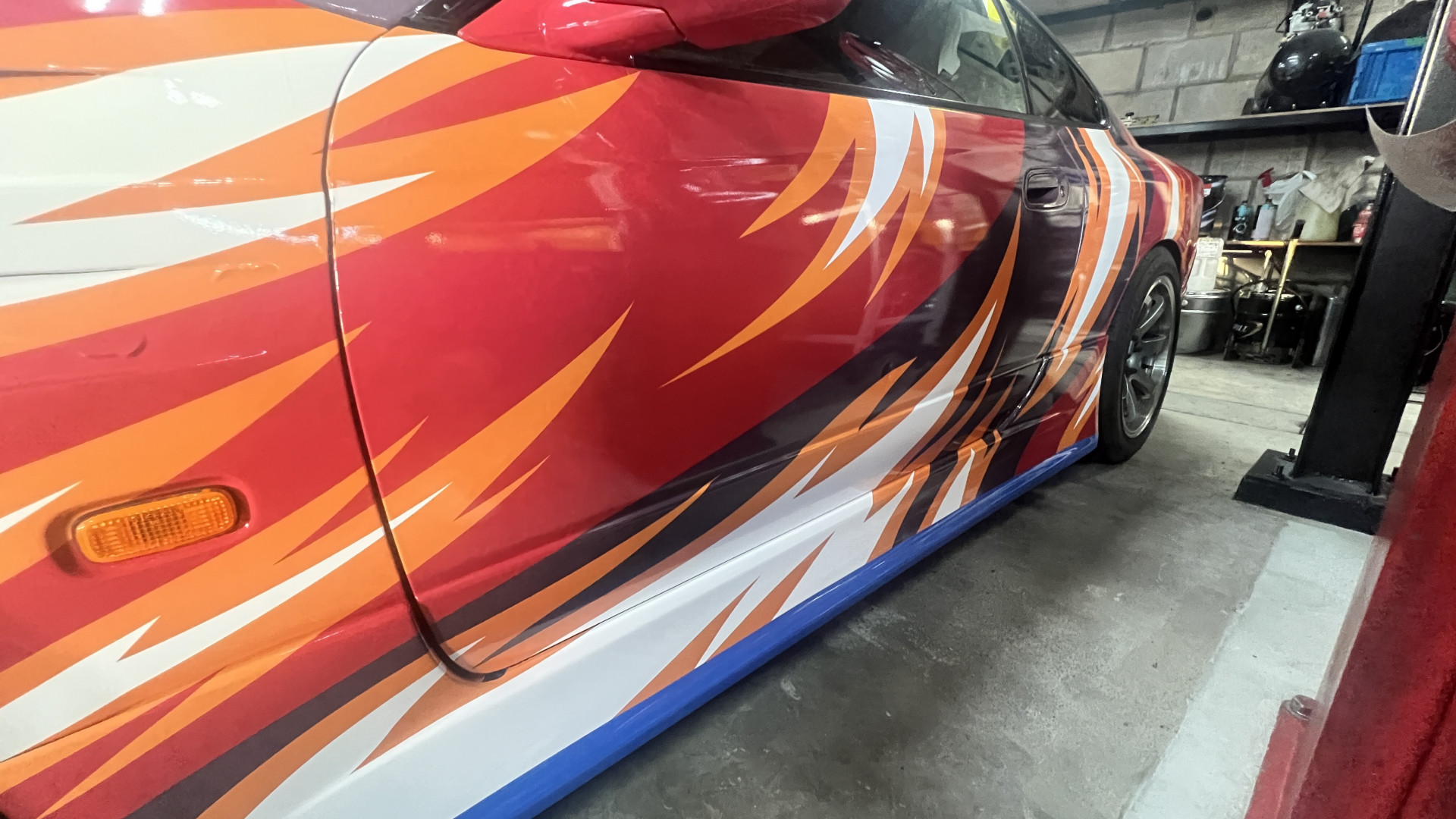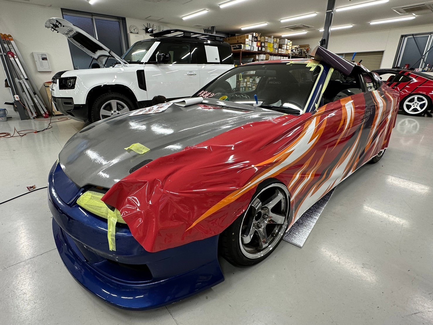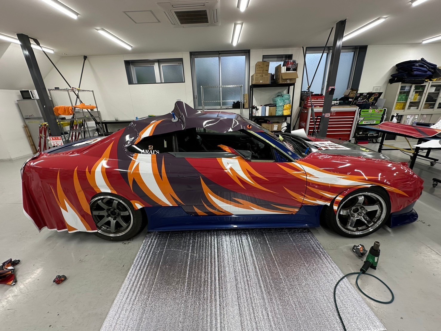 Luego se aplicó cuidadosamente una envoltura de vinilo alrededor de todo el auto...