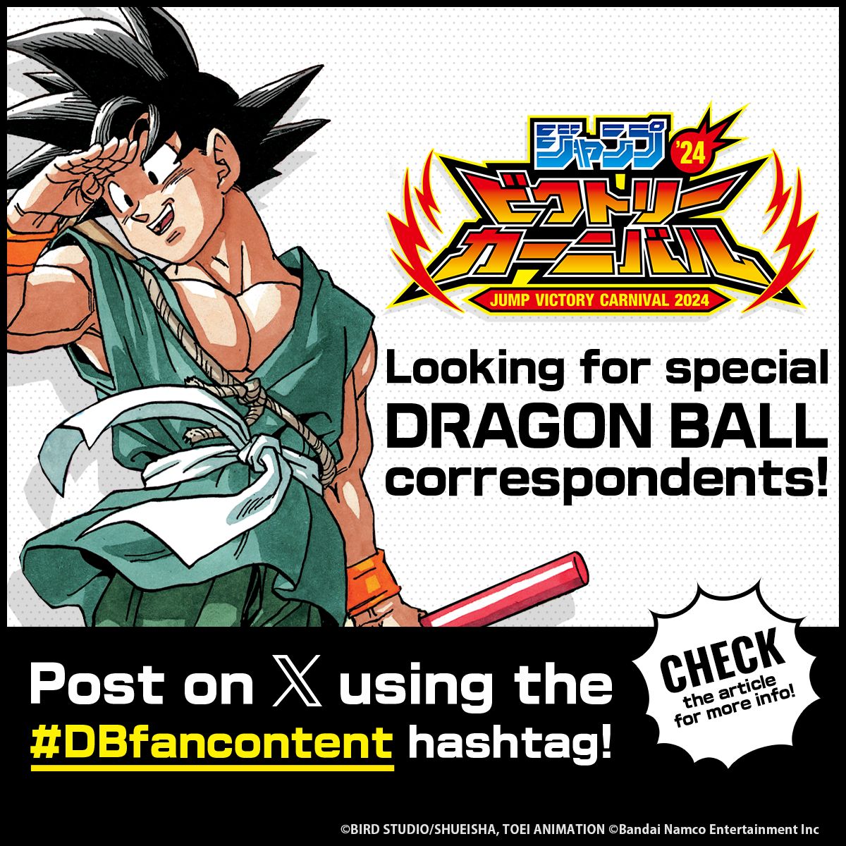 ¡Todo lo que tienes que hacer es publicar tus pensamientos e informes sobre Jump Victory Carnival 2024 en X usando el hashtag DBfancontent !