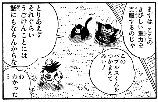 Goku viene a entrenar con Kai, amante de los juegos de palabras, pero le dice al guerrero: "Hasta que puedas superar esta gravedad... ¡No tiene sentido nada más!" ¡Luego hace que Goku intente atrapar a Bubbles como su primera lección!