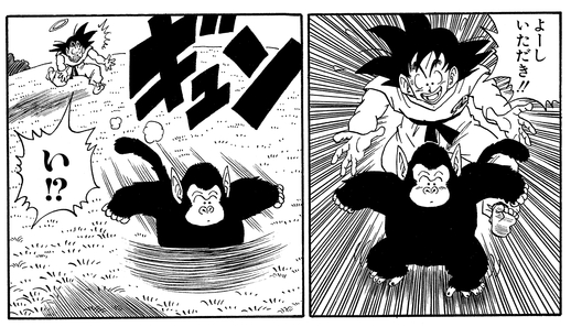 Después de aproximadamente cuarenta días, Goku finalmente se adapta a la gravedad y logra poner sus manos sobre el veloz primate.