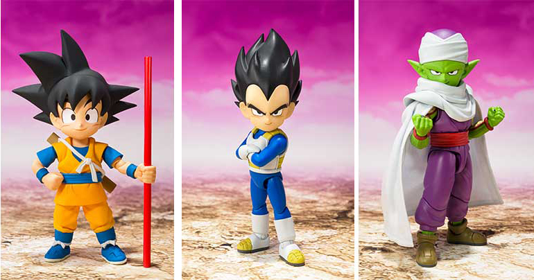 ¡Goku (Mini) -DAIMA-, Vegeta (Mini) -DAIMA- y Piccolo (Mini) -DAIMA- se unen a la serie SHFiguarts! ¡Gracias al alto nivel de articulación y las piezas intercambiables incluidas con estas figuras, podrás recrear todo tipo de escenas de batalla de la serie!