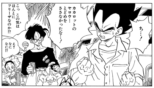 Yamcha habla con Goku en el Planet Namek a través de los poderes telepáticos de Kai del Norte, y se sorprende al saber que su nuevo enemigo, Frieza, supera con creces incluso al poderoso príncipe Saiyajin, Vegeta.