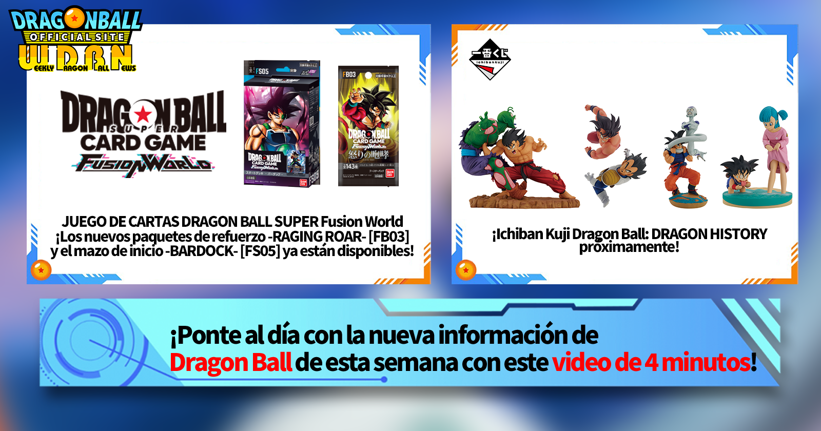 "Noticias semanales de Dragon Ball" es una serie de videos que se actualiza todos los lunes (JST) para brindarte las últimas noticias del mundo de Dragon Ball. ¡Únete al editor de V Jump, Victor Uchida, mientras cubre toda la información más reciente publicada la semana anterior, así como actualizaciones nuevas como información sobre nuevos productos y noticias del sitio para la semana que viene!