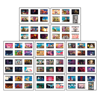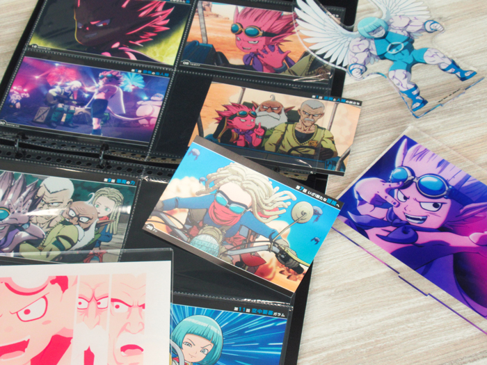 Para los personajes, usamos algunos más grandes, como Satanás y Muniel transformado, pero como también había imágenes de adelanto de la película de los cinco personajes principales del arco de la serie "La historia del héroe Angel ", también las incluimos. Teniendo en cuenta que este conjunto está basado en la serie de anime, queríamos asegurarnos de incluir imágenes de los créditos iniciales y finales de la serie, ya que son exclusivos del anime.