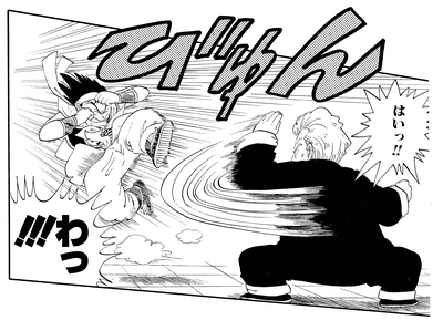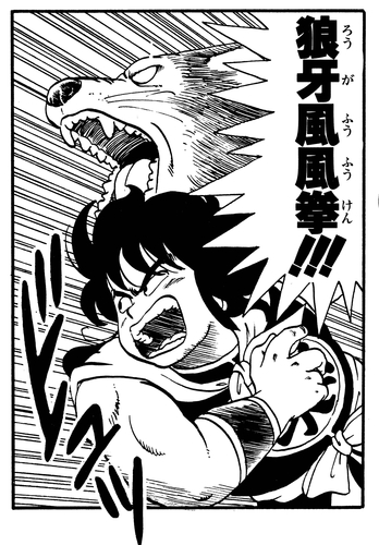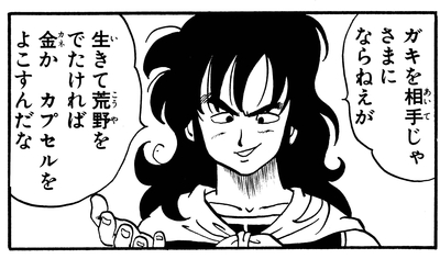 Una de esas bandas de viajeros desafortunados que se encontraron con el vil dúo del desierto fue Goku y sus amigos en su búsqueda de las Dragon Balls. En la pelea resultante entre Yamcha y Goku, Yamcha se Yamcha al desatar su temible técnica Roga Fufu-Ken (Wolf Fang Fist) .