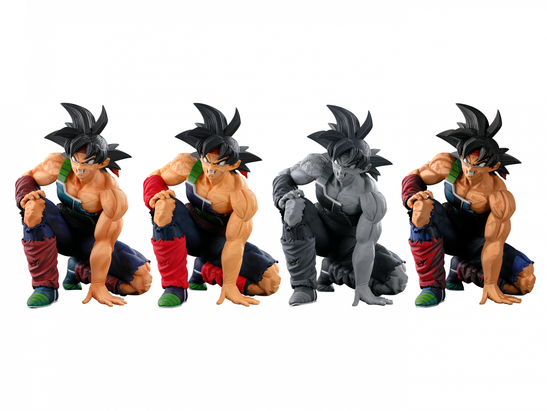 ¡Y no solo un Bardock, sino una increíble alineación de cuatro premios Bardock de diferentes colores diseñados por el destacado fabricante de modelos Hiroyuki Nakazawa, quien es conocido por los fanáticos por crear increíbles figuras de Dragon Ball una y otra vez!