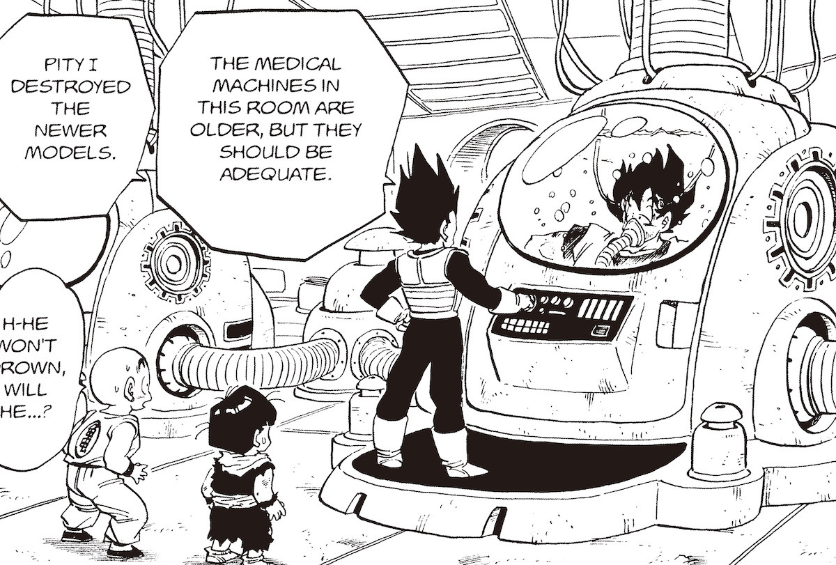 —Me imagino que los atletas no son los únicos que piensan: "¡Necesito curarme rápido y volver a la lucha!". Tal vez los miembros de la Fuerza Frieza tuvieron el mismo pensamiento, y eso es lo que llevó a la invención de la Medical Machine.