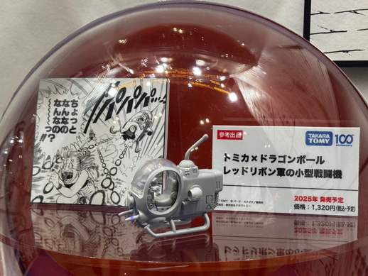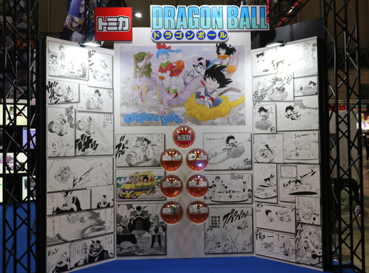 Los prototipos estaban alojados en vitrinas esféricas inspiradas en las Dragon Balls, acompañadas de ilustraciones de la serie que mostraban los vehículos que inspiraron estos increíbles artículos.