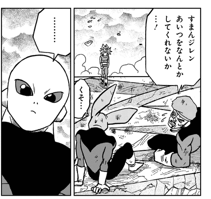 Con su compañero de equipo restante, Dyspo, Kahseral pide ayuda a su aliado, Jiren, pero sus súplicas no reciben respuesta.