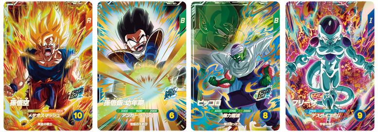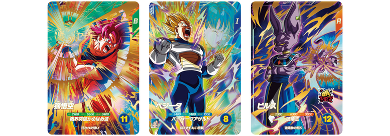 Además de los efectos poderosos, las cartas God Rare (GDR) cuentan con fabulosos efectos holográficos y 3D. La alineación de cartas God Rare (GDR) en el segundo set incluye luchadores del arco de Frieza , la película Dragon Ball Z: Battle of Gods e incluso personajes del exitoso anime Dragon Ball DAIMA que se está transmitiendo actualmente.