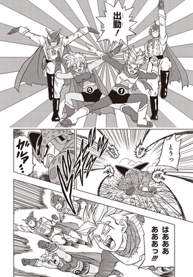 ¡El manga también presenta una historia de precuela de Trunks y Goten en edad de escuela secundaria que protegen la ciudad como los misteriosos Saiyaman! Después de un incidente en el lejano Mt. Butterfly, se desarrolla una feroz batalla contra los androides creados por el genio científico Dr. Hedo.