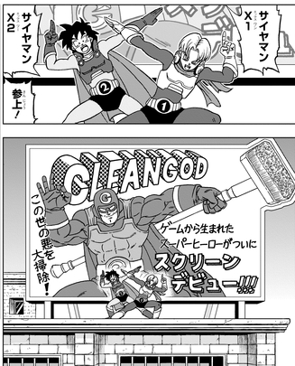 Aquí hay un avance que se publicó en la edición de marzo de V Jump. Frente a Trunks y Goten se encuentra su héroe favorito, Cleangod. Como un superhéroe que debería existir solo dentro de un juego, ¿qué ha sucedido para que aparezca de manera tan destacada?