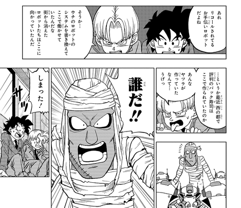 ¡Se enfrentan al androide de la Alpha series que supervisa a los robots ayudantes y ponen fin al plan! Sin embargo, Trunks encuentra un disco de datos que resulta ser el detonante de su próximo conflicto...