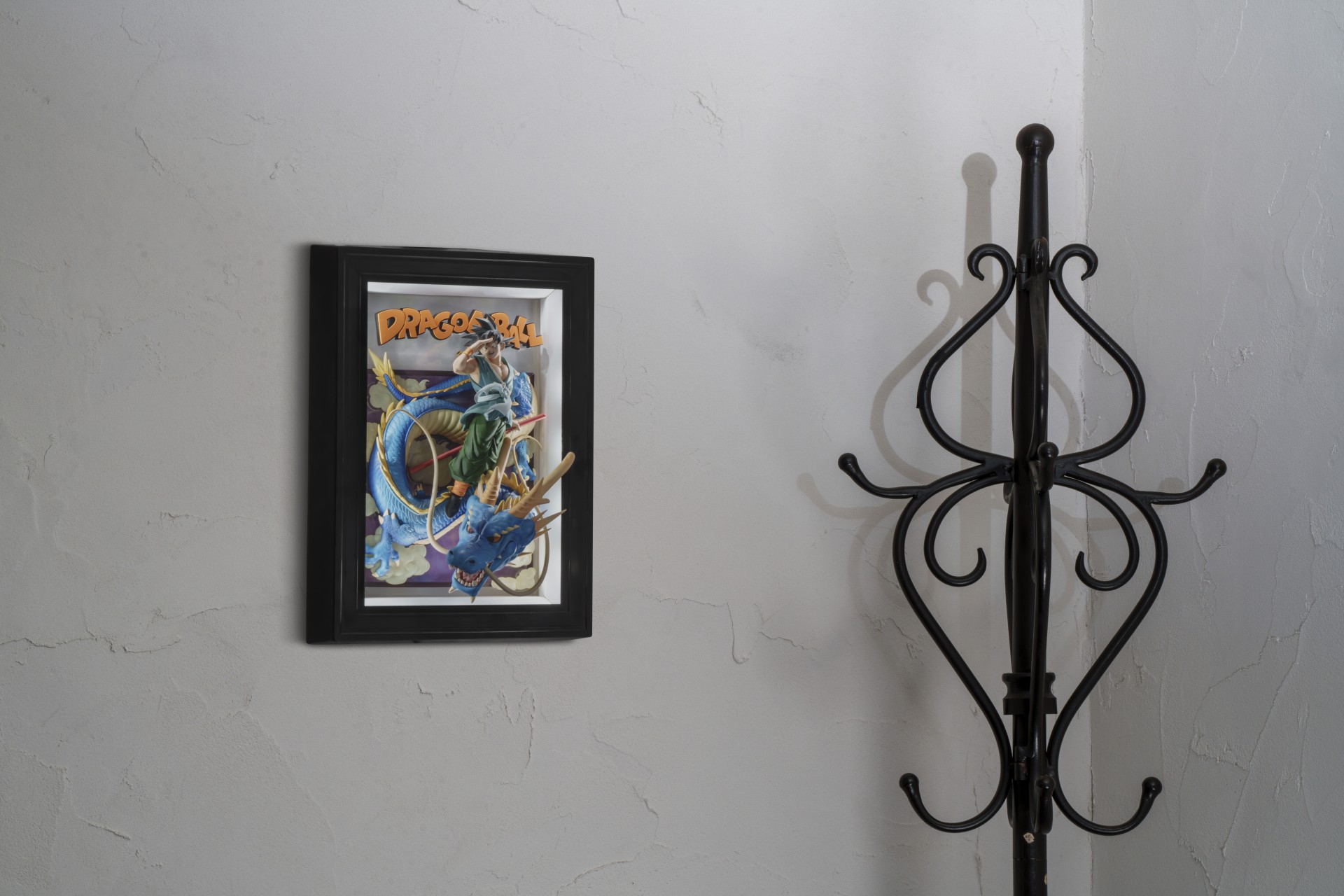 El primer artículo presenta una representación tridimensional de la portada final de Dragon Ball. Este llamativo coleccionable puede colgarse en la pared o colocarse en un estante como decoración interior, llevando el mundo de Dragon Ball a tu espacio cotidiano.