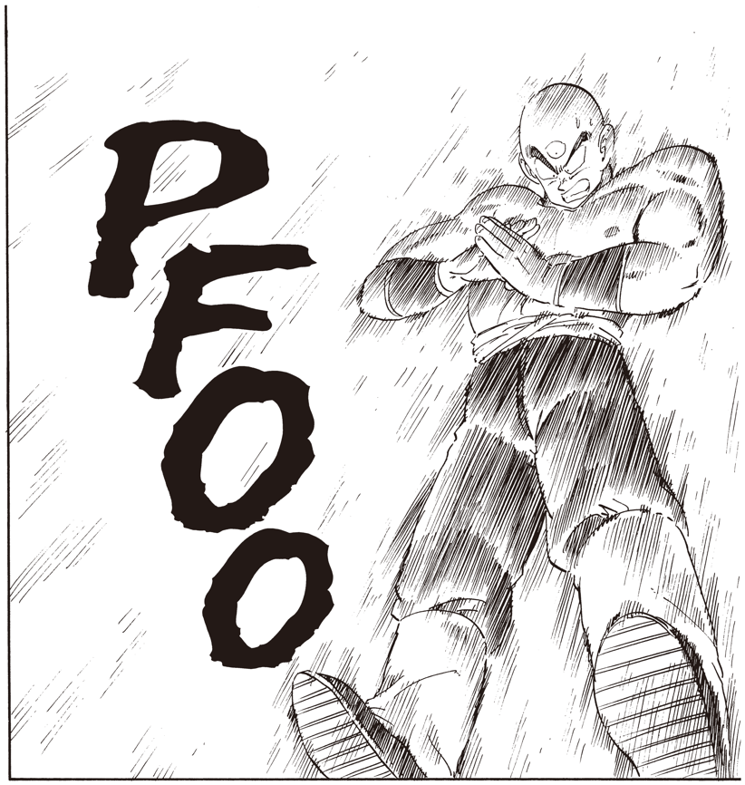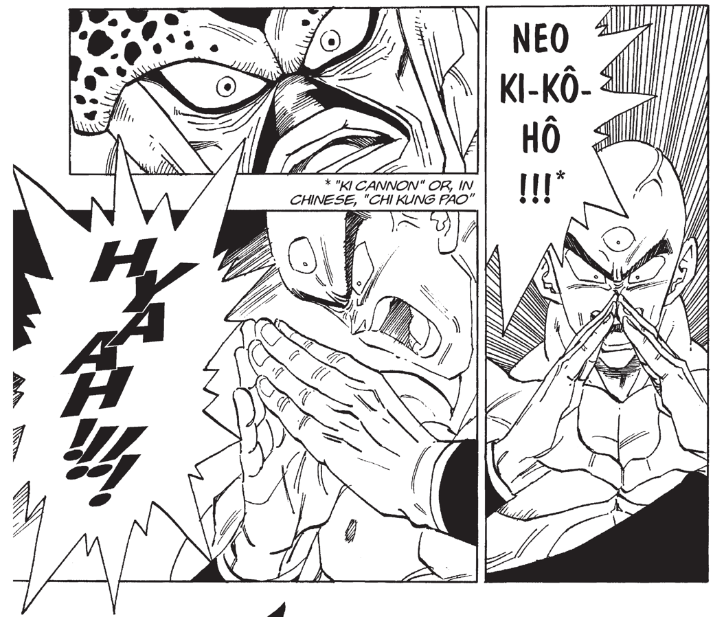 Shoinji:Estaba genial en ese momento. Quería que Tenshinhan simplemente acabara con Cell, pero claro, eso nunca iba a pasar (risas). Lo único que pudo hacer fue ralentizar a Cell un rato, pero el Neo Kikoho que usó fue genial.