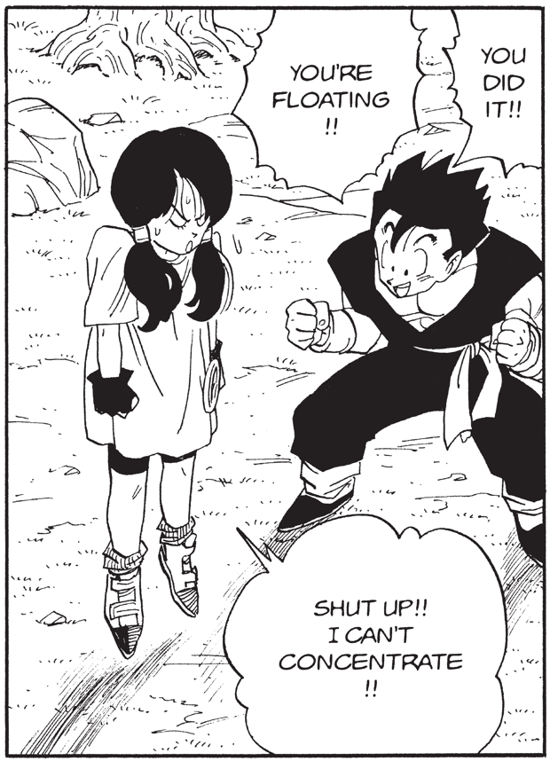 Shoinji:Sí. Incluso Videl aprendió a usar el Buku-jutsu (Técnica de Levitación). Cuando es un movimiento que un personaje humano puede hacer, me hace sentir como si yo también pudiera hacerlo. Me encantaría poder usar el Buku-jutsu (Técnica de Levitación).