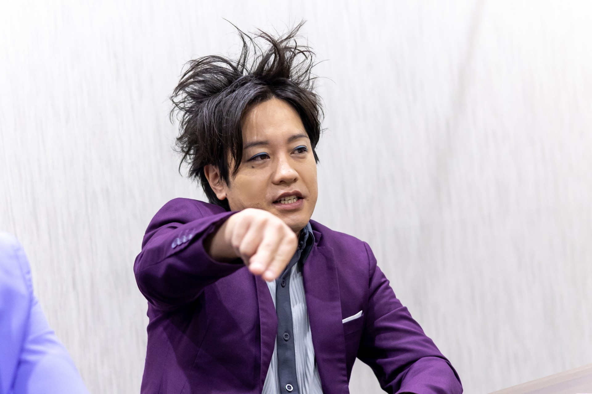 Shoinji:Bueno, claro, ¡al gritar así (haciendo la pose de Kiai cargando)! Por eso creo que tengo un peinado de Super Saiyan(risas).