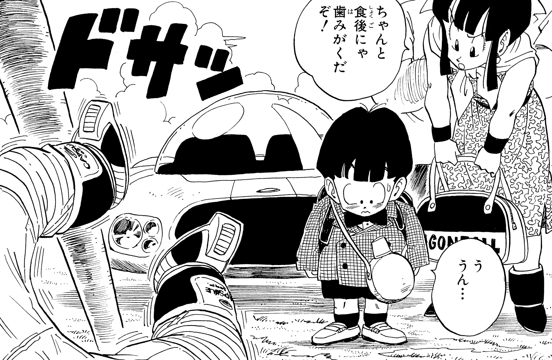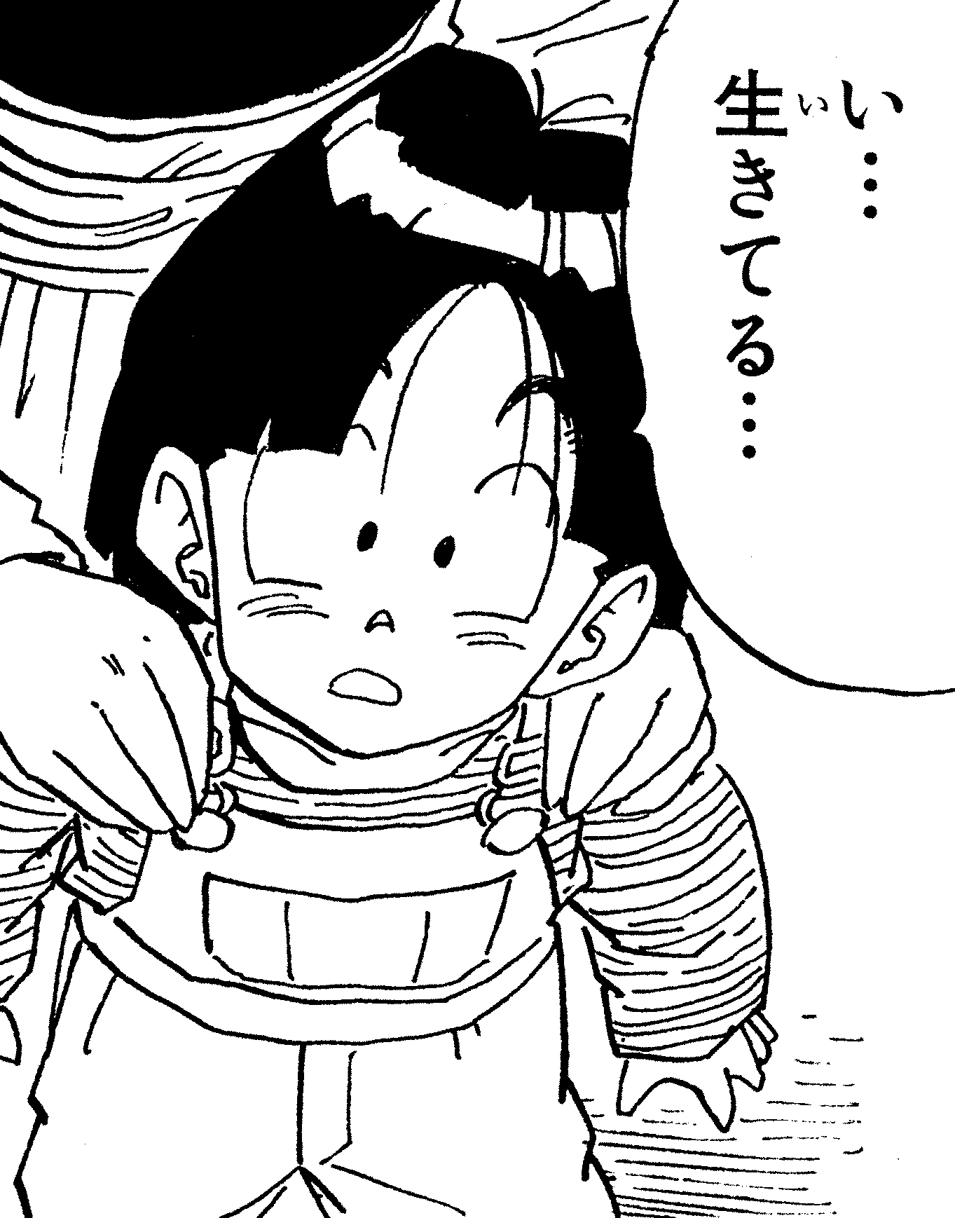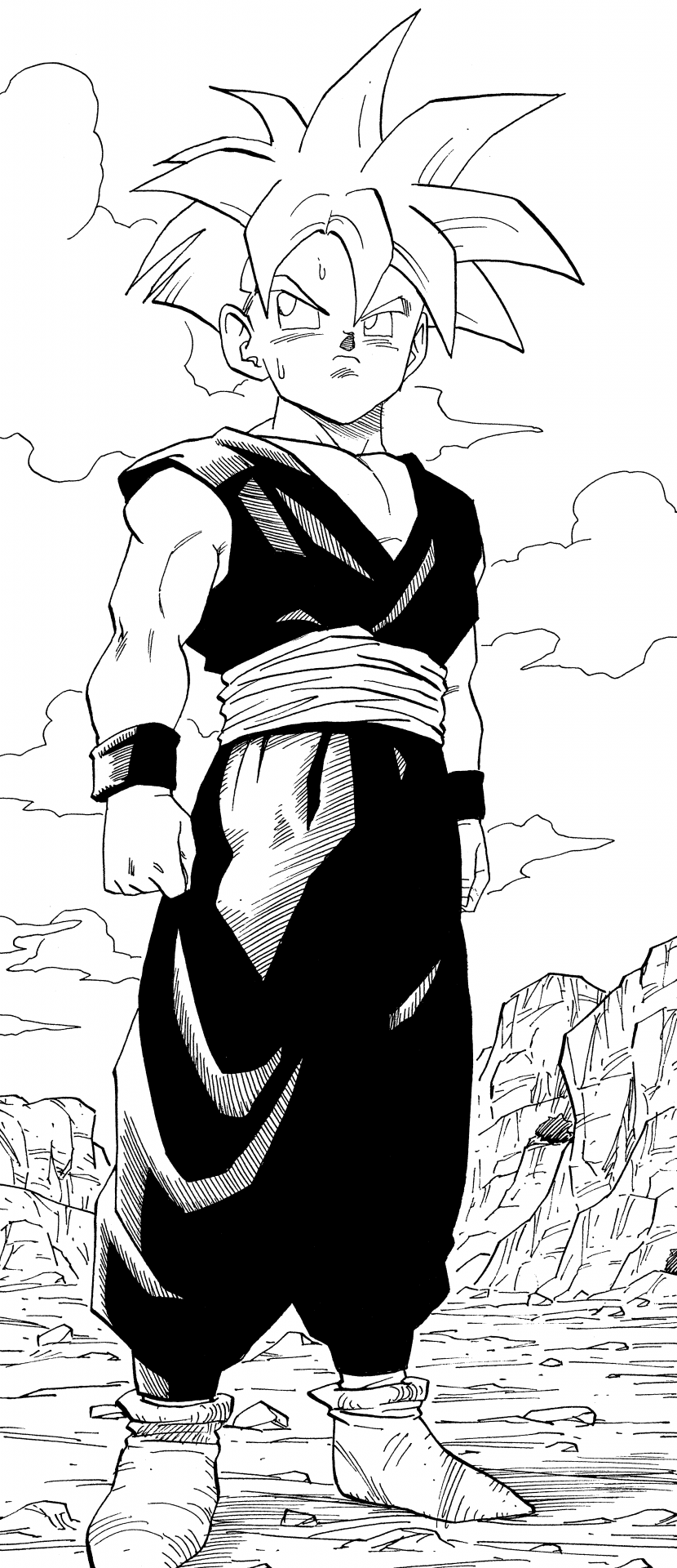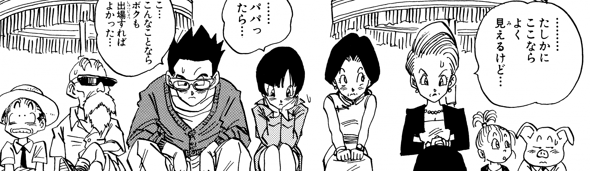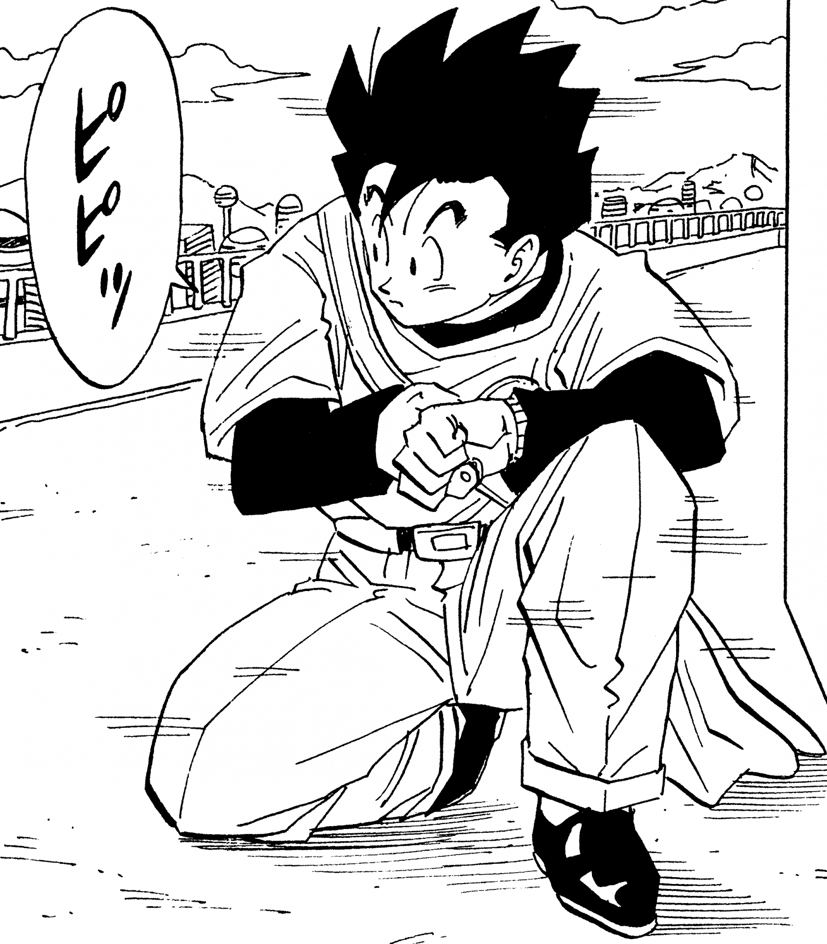 ¡Aquí está Gohan disfrutando de un picnic familiar antes de los Juegos de Cell ! Su ropa blanca de Kung Fu ve genial.