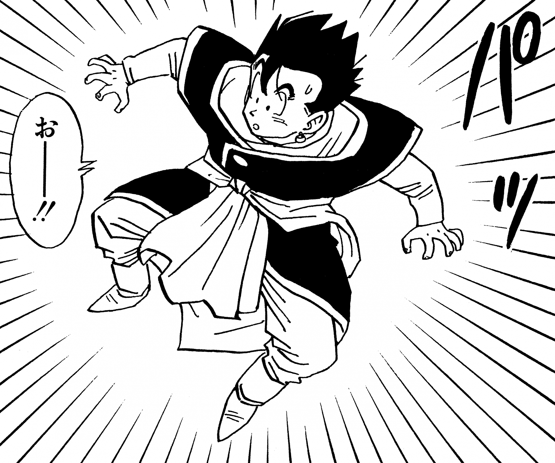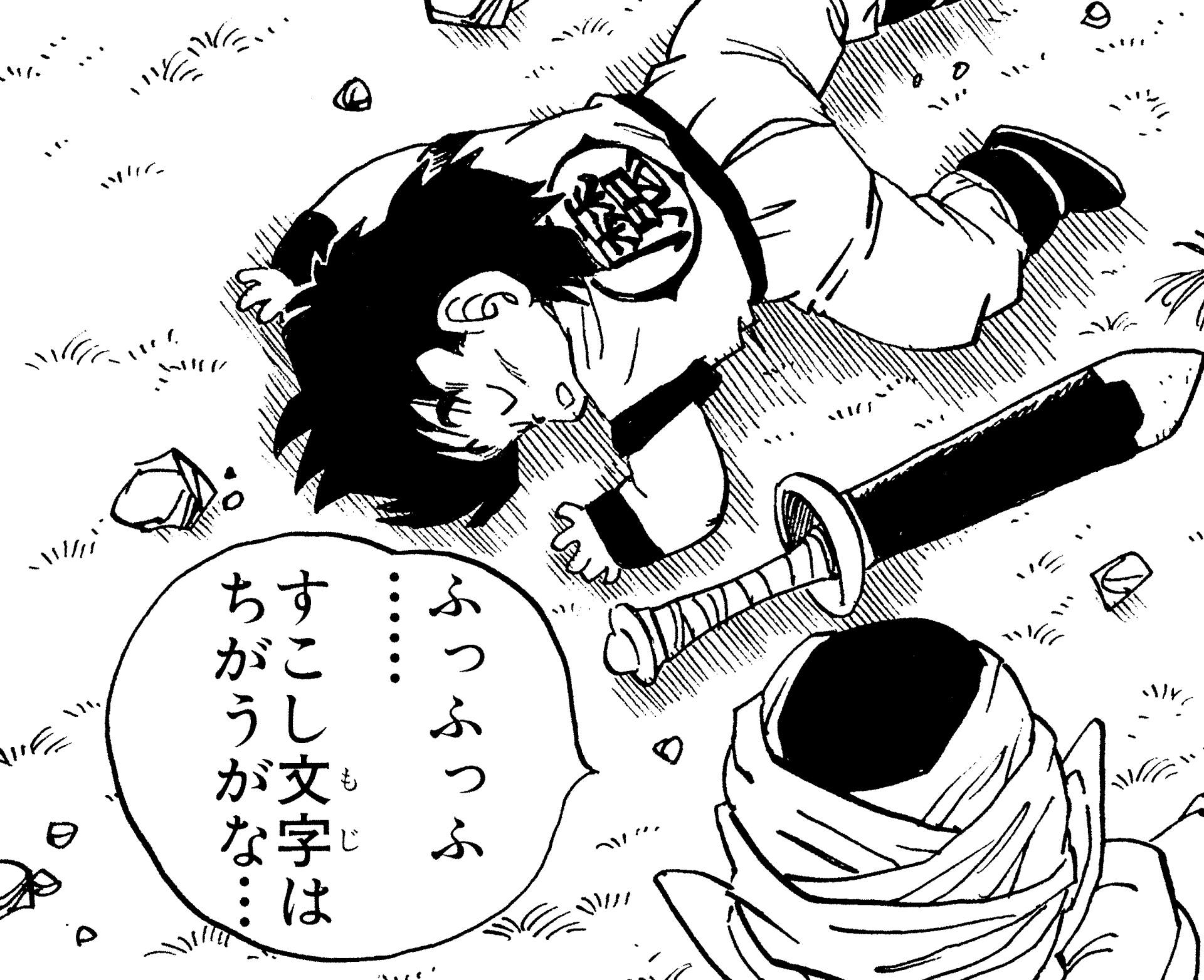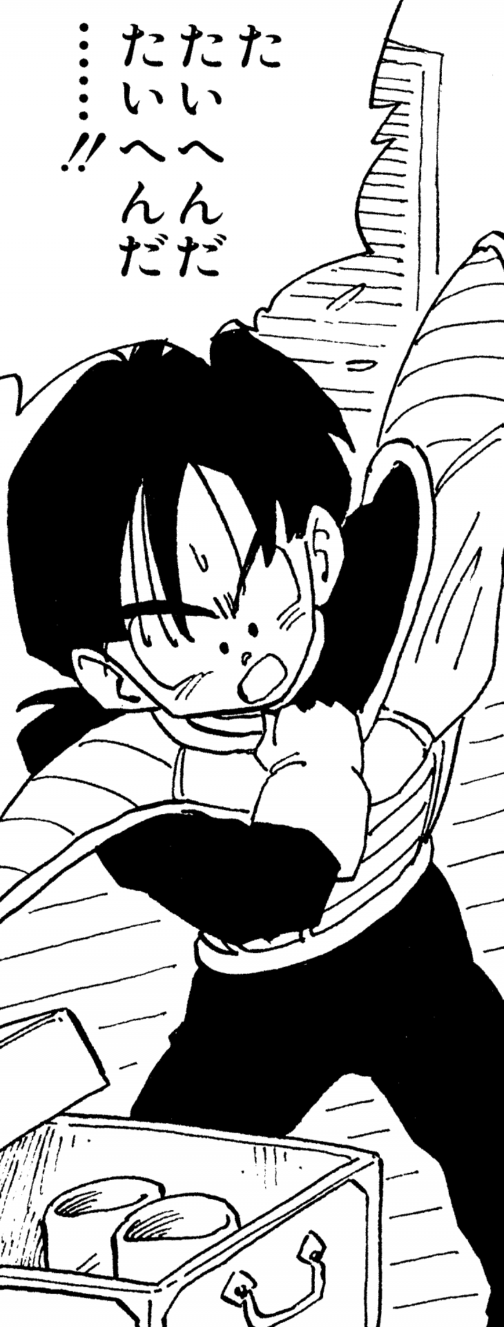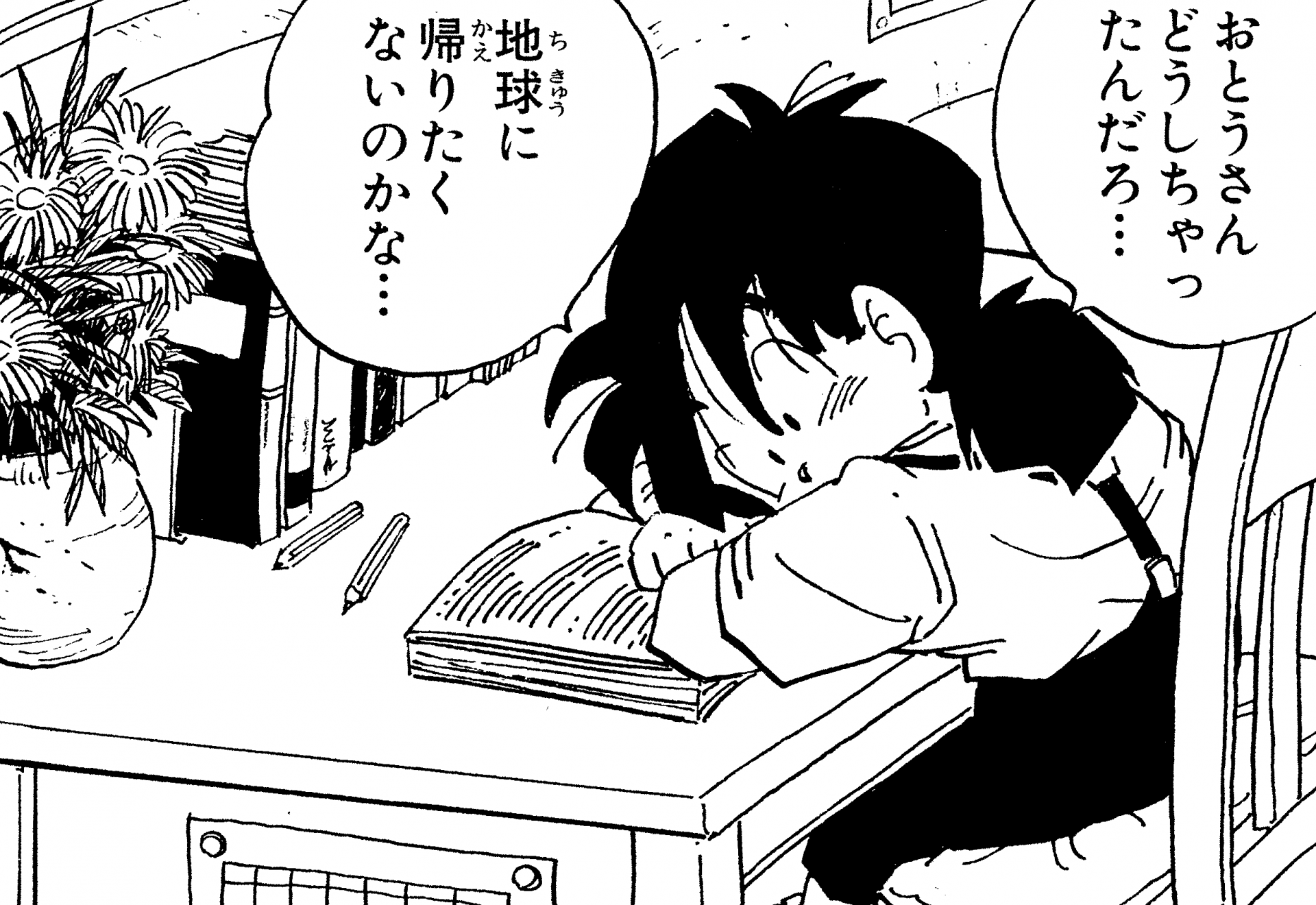 ¡Aquí está Gohan disfrutando de un picnic familiar antes de los Juegos de Cell ! Su ropa blanca de Kung Fu ve genial.