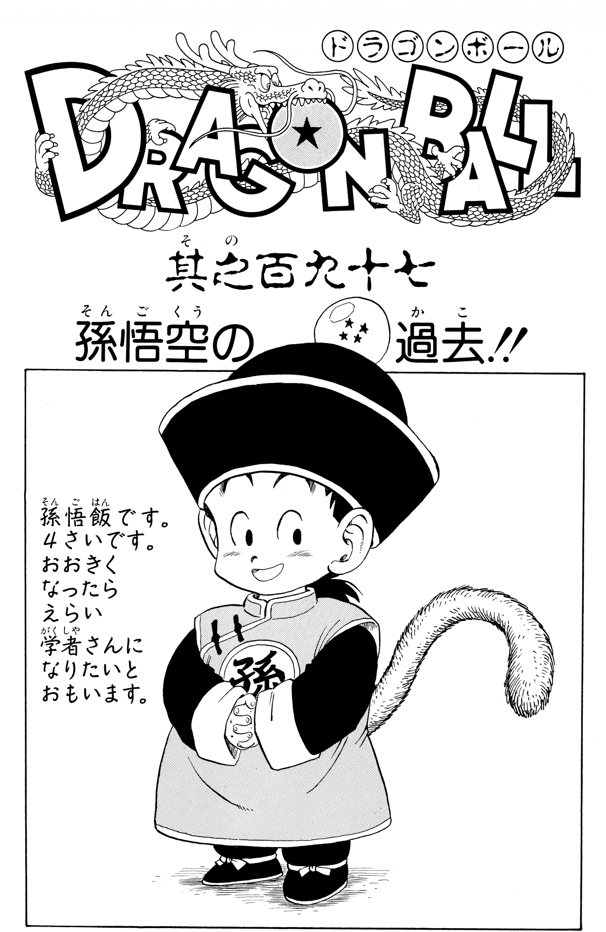 Este atuendo con la marca de la familia "Son" en su pecho fue lo que usó Gohan durante su primera aparición en la serie. Tiene una abertura en la parte posterior para la cola de Gohan, ¿y no es adorable el sombrero con la Four-Star Ball del Abuelo Gohan? Cuando la tripulación fue al Planet Namek, Chichi lo hizo usar un atuendo que presentaba una pajarita y le dio un corte de tazón, ¡como si se dirigiera a una fiesta elegante! Finalmente, el día después de la muerte de Goku, Gohan usó este solemne traje negro, presumiblemente para asistir al funeral de su padre.
