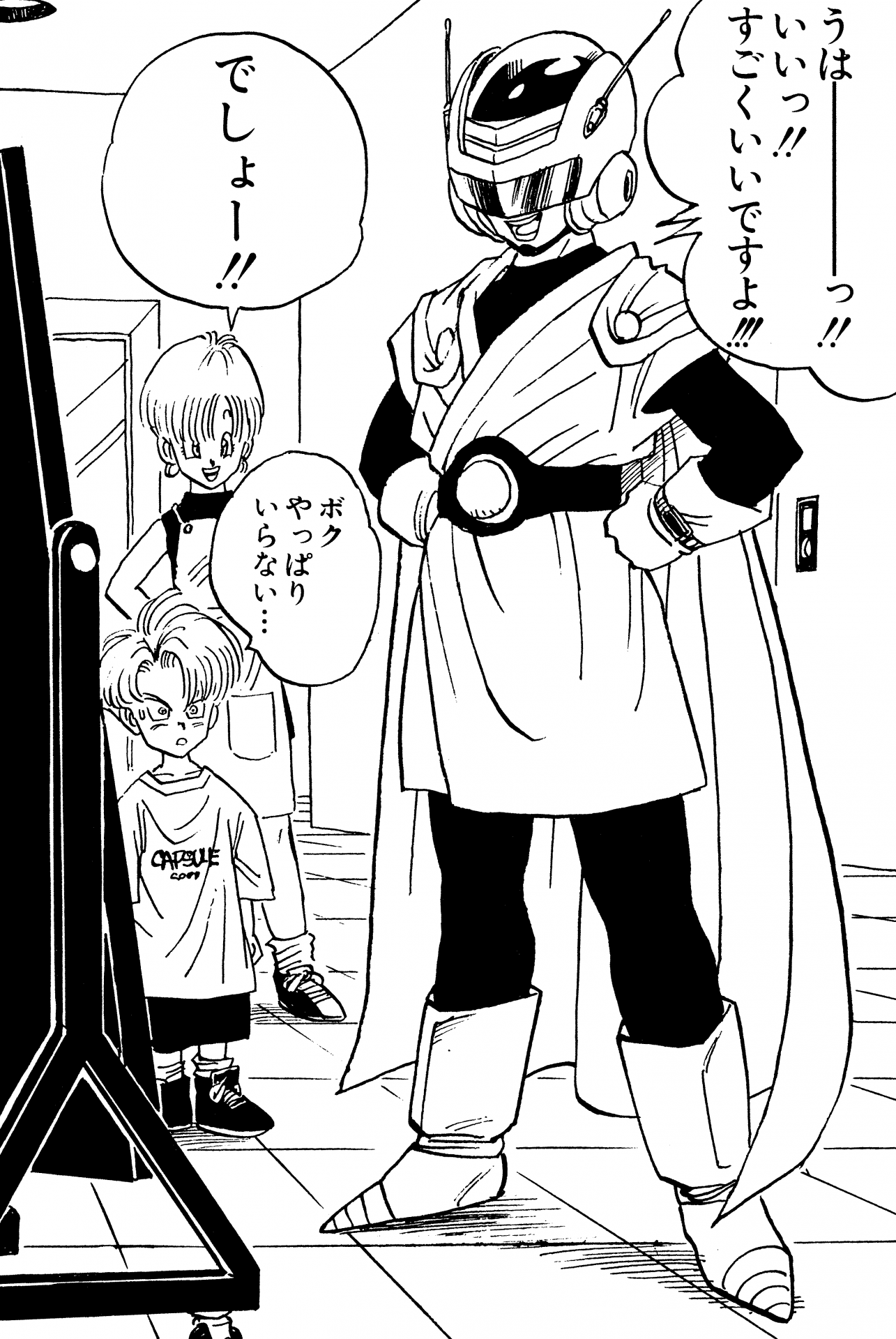 Aunque esta armadura de batalla podría recordar a los subordinados de Frieza, ¡Gohan también la ha usado! Primero lo usó en Planet Namek ante la insistencia de Vegeta de que necesitaría protección adicional. Como Gohan todavía estaba en el lado más bajo en ese momento, la armadura de batalla que recibió era de un tamaño pequeño hecha para la gente del Planet Lilliput. A Gohan pareció gustarle la funcionalidad de este atuendo y lo mantuvo después de regresar a la Tierra, y luego se lo puso una vez más durante el ataque de Freezer. También usa una versión de armadura de batalla sin hombreras diseñada por Bulma durante su entrenamiento en la Room of Spirit and Time.