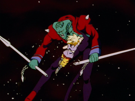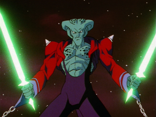 Redgic transforma los cuernos de sus hombros en espadas y lanza implacables ataques contra Goku, quien logra bloquear el ataque. En cuanto las espadas se rompen, contraataca con una patada que lanza a Goku por los aires.