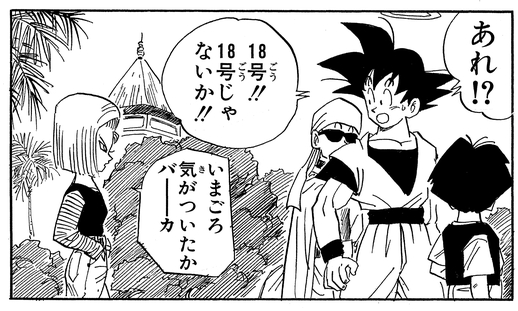 En el recinto Tenkaichi Budokai , Goku grita: "¡¿Eh?! ¡¿Número 18?!", a lo que ella responde secamente: "¡Te has tomado bastante tiempo!".
