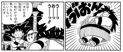 Después de enterarse de que el festín que Goku le prometió eran solo un par de frijoles Senzu de aspecto magro, ¡los engulló con avidez y, como resultado, terminó sin poder moverse!