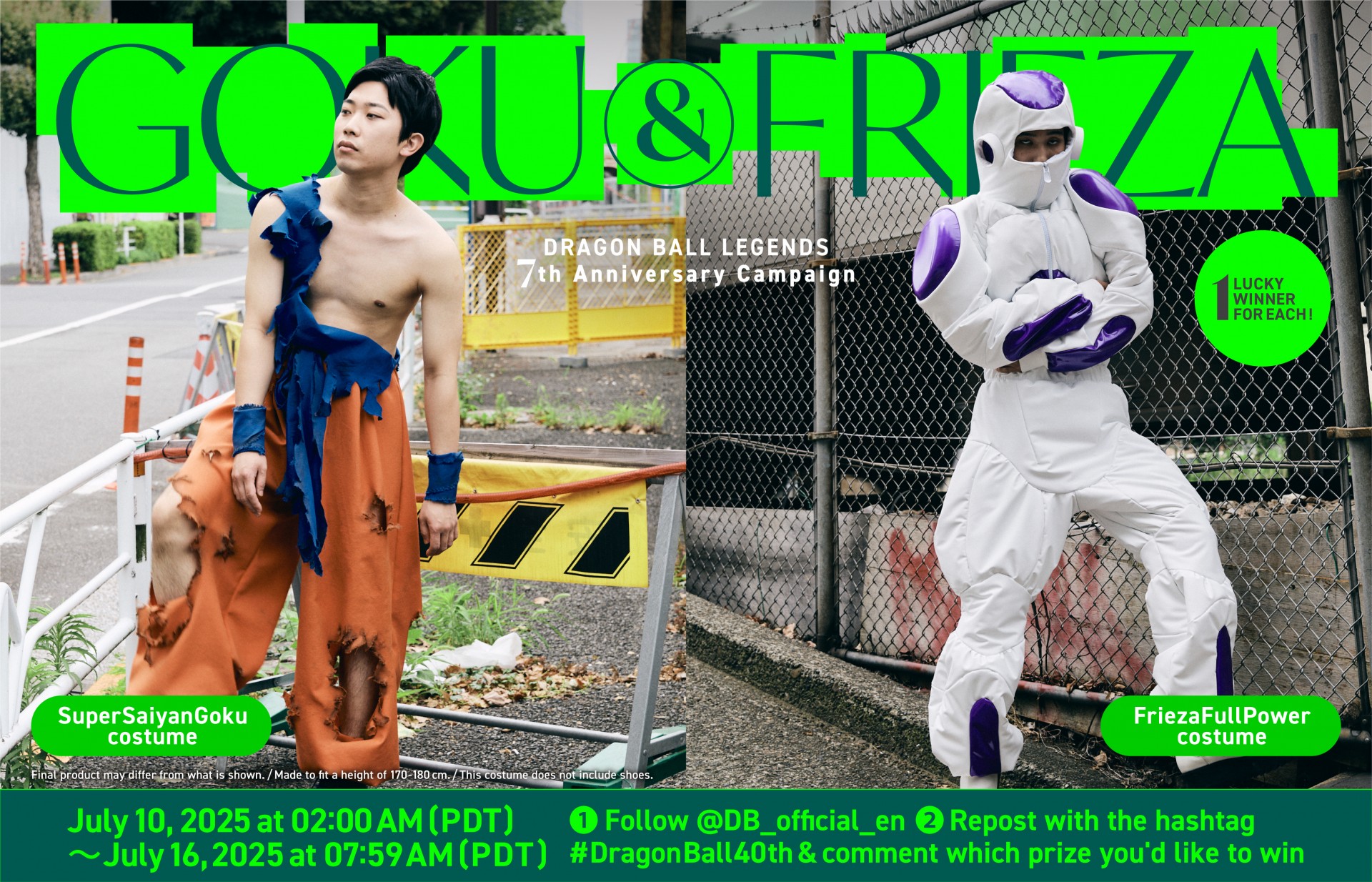 Vuelve a publicar la publicación designada con el hashtag # DragonBall40th y comenta qué artículo te gustaría ganar (ya sea #SuperSayanGokuDisfraz o#FreezerFullPower Traje