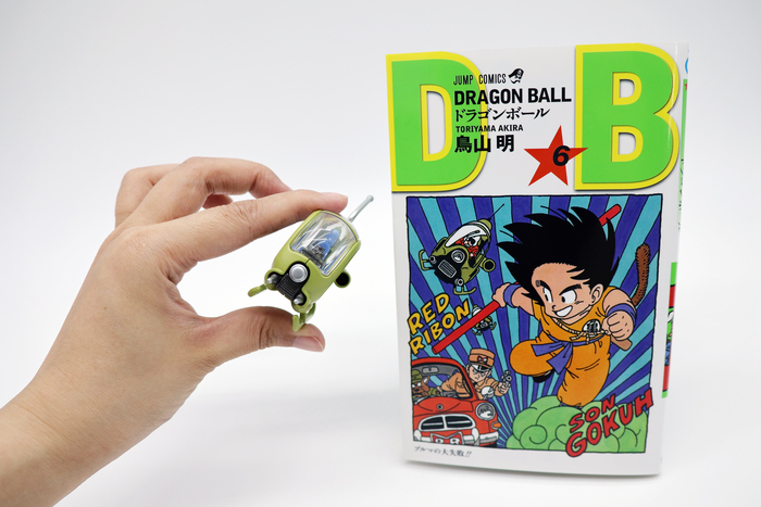 La camioneta de Kamesennin y la pequeña aeronave del Ejército de la Cinta Roja llegaron a la redacción del sitio web oficial de Dragon Ball . ¡Echemos un vistazo a estos productos, tan pequeños que caben en un paquete de 8 x 4 cm!